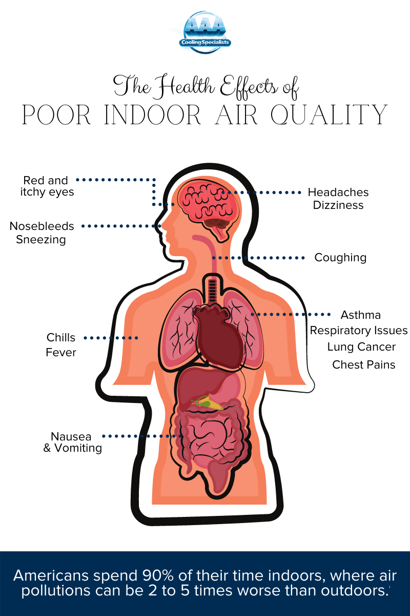 Constantly waking up with a stuffy nose, fighting indoor allergies, or dealing with a never-ending cold are just a few symptoms of poor indoor air quality. Here are some other ways in which your health may suffer.